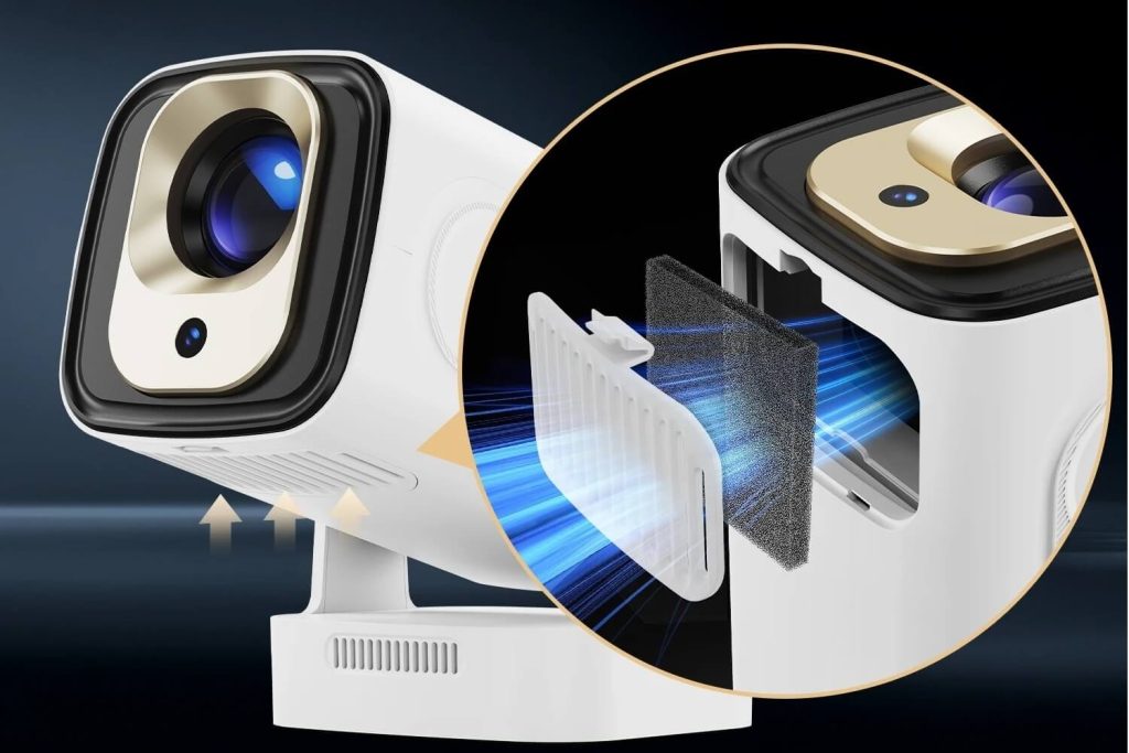 3. Regular maintenance: Clean the air filter regularly to reduce the dust inside the projector. For instance, the HY310 is equipped with a built-in dust-proof sponge that can capture 95% of the dust particles in the air. And it is convenient to disassemble and clean it regularly.