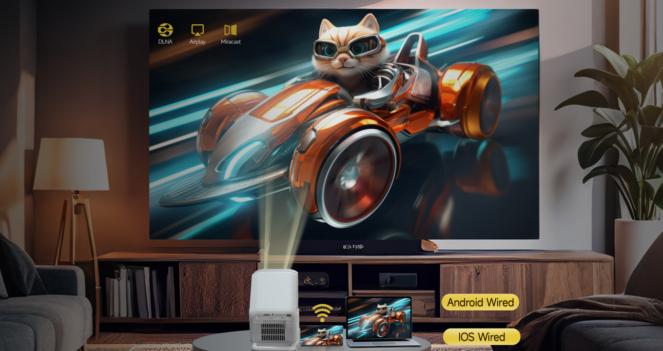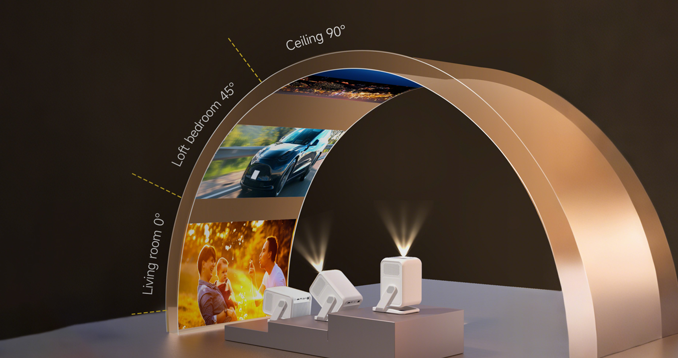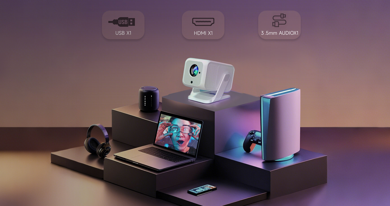 The HY310X comes with a 180° adjustable stand, allowing users to easily rotate and position the projector for the ideal viewing angle. It supports projection onto walls, ceilings, or other surfaces. The non-detachable design not only protects the device but also ensures smooth rotation and flexible placement.